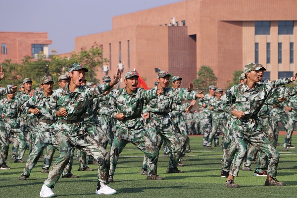 活动由党委副书记杨之毛主持。在庄严的升国旗仪式之后,以退伍大学生国旗班领衔,来自六个学部的新生军训方队进行了分列式汇报表演,他们精神饱满,意气风发,迈着正步通过主席台。随后,新生代表分别进行了大气磅礴的军体拳表演和队形变换表演,摆出五角星、党徽、“70”、“1949”、“2019”、“中国”、“文理”等图案,向中华人民共和国成立七十周年献礼,全场响起热烈掌声。