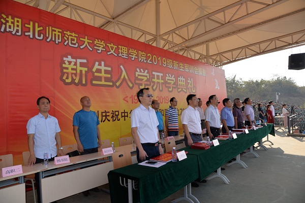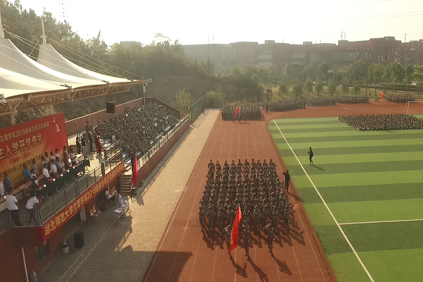 9月29日上午,秋高气爽,晴空万里,正值举国同庆,喜迎建国七十周年华诞之际,万搏(中国)2019级新生军训会操暨开学典礼在运动场隆重举行。湖北师范大学副校长、万搏app官方版下载院长李开灿,万搏app官方版下载常务副院长杨学斌、党委书记杨邓红、党委副书记杨之毛、副院长张志华、副院长王胜国等校领导,各部门(学部)负责人、辅导员及2475名新生参加活动。