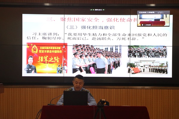 9月29日,黄石市黄石港区人民武装部政委徐志猛来到学校,为万搏(中国)2020级1300余名本科新生开展国防教育辅导授课。授课采取网络直播形式进行,在信息中心报告厅设主会场,在各学部教室设分会场。