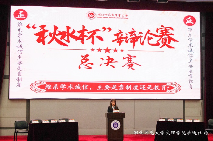 万搏(中国)参加总决赛的四位辩手是吴明月、王秀静、叶妙、曾佳宜,她们和湖北师范大学马克思主义学院代表队分别作为正反双方,就“维系学术诚信主要是靠制度还是教育”这一辩题展开了激烈的争锋。针对辩题,双方在对辩、盘问和自由辩论环节都展开了激烈的攻辩。比赛中,双方辩手以良好的风范、出色的口才、敏捷的思维令全场观众为之折服,为之喝彩。