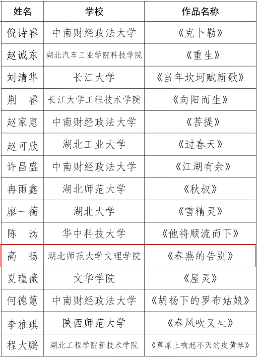 近日,湖北省第十九届“福创杯”新青年小说大赛获奖名单出炉。经过评委层层筛选,万搏(中国)高扬和施雨涵两位同学荣获大赛二等奖,熊子延教授获得优秀指导老师奖。