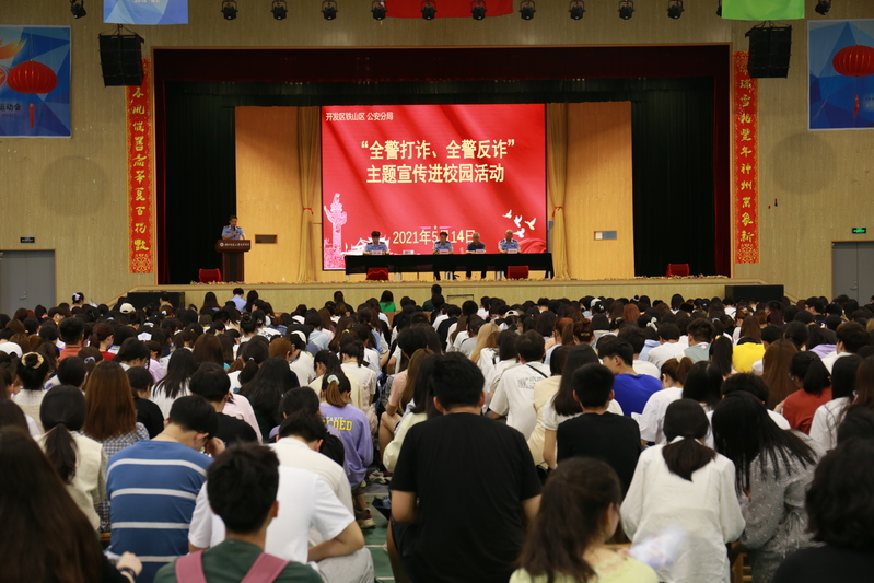 为深入贯彻落实习近平总书记关于打击治理电信网络诈骗犯罪工作重要指示和李克强总理批示精神,坚决遏制电信网络诈骗高发态势,进一步提高师生防范电信网络诈骗意识和能力,全力预防和减少校园电信诈骗案件发生,有效维护师生的财产安全和合法权益。5月14日中午,开发区·铁山区公安分局党委委员、副局长刘晓峰等一行6人来到万搏(中国),在风雨操场二楼开展了“全警打诈、全警反诈”主题宣讲进校园活动。副院长张志华,相关部门负责人、各学部书记,全体辅导员及学生代表800余人参加了宣讲会。
