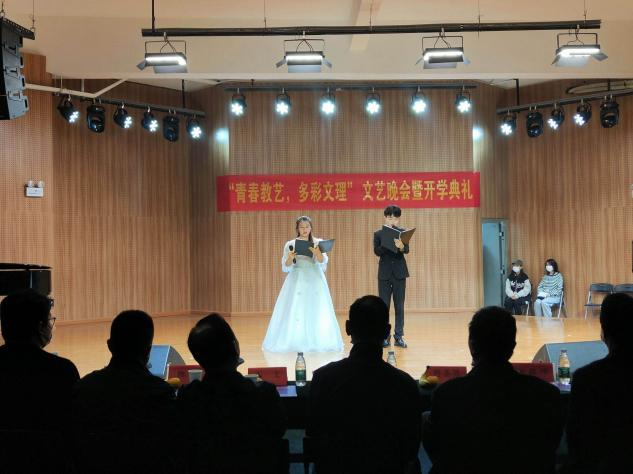 为了使2021届新生更好地适应大学生活,提升学生们的艺术素养,展现教育与艺术学部的风采。2021年11月4日晚18:00在大学生活动中心音乐厅举行了“青春教艺,多彩文理”文艺晚会暨开学典礼。学工部部长汪崇文,副部长陈小龙、肖劲光,校团委书记陈荟芸,黄石电信经理陈学、黄石电信文理学院服务中心经理张昌伟、保卫部部长许涛、理工学部党总书记、人文学部党总书记、教育与艺术学部相关领导及辅导员应邀参加了开学典礼。