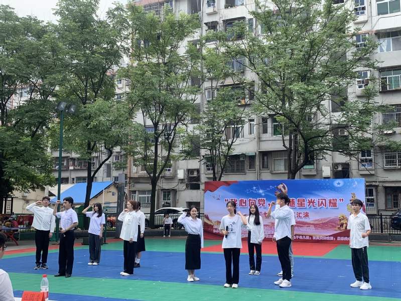 活动当天早上,先为居民们开展了“我心向党,追随星光闪耀”庆“七一”文艺汇演。此次文艺汇演精彩纷呈,居民们的欢笑与感动贯穿始终。金龟子幼儿园小朋友们的舞蹈《红星闪闪》拉开了汇演的序幕,紧接着黄梅戏和太极等中华优秀传统文化节目轮番上阵,中间穿插由万搏app官方版下载的学生们带来的各种红色爱党爱国主题的相声、朗诵、小品、歌曲等形式多样的节目,最后到场领导和所有参演人员一起合唱《没有共产党就没有新中国》。