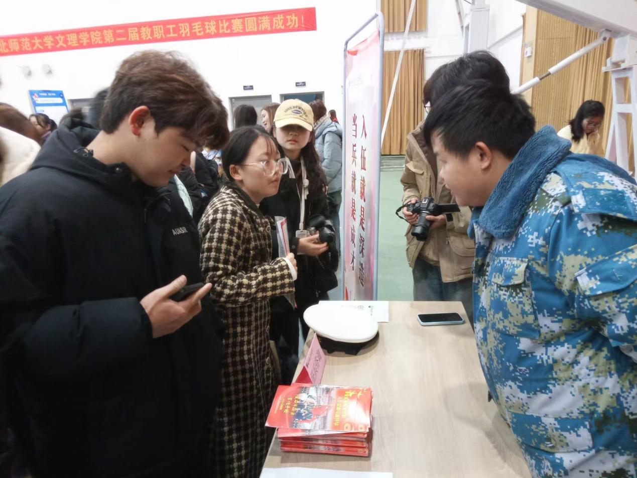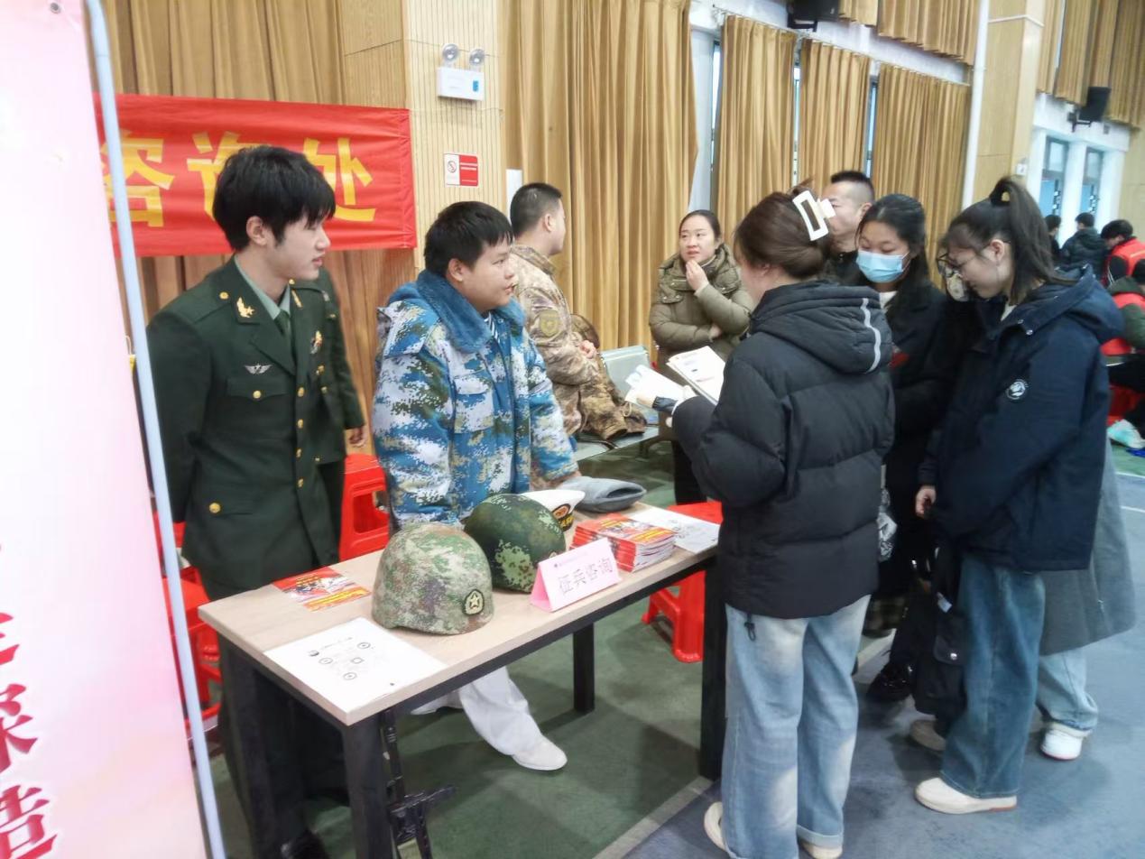 本网讯(通讯员:朱明敏)为扎实做好2025年春季征兵工作,激发广大毕业生参军热情,2024年12月11日上午,于万搏app官方版下载风雨操场二楼开展2024年秋季征兵宣传进招聘会活动,参会人员武装部干事熊琦,学工部副部长陈小龙,征兵办老师秦雯雯,以及各退役大学生。