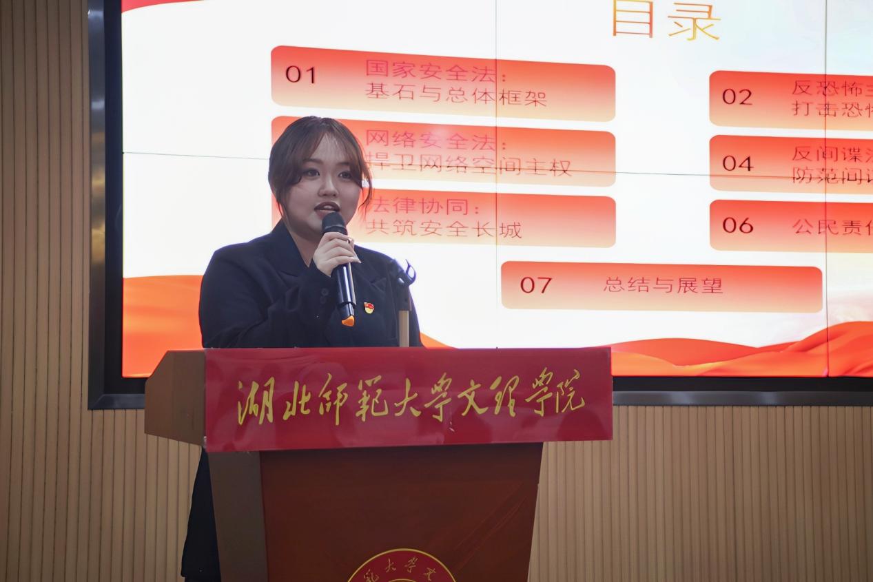 比赛中,十位参赛选手围绕国家安全主题进行了全方位、多角度的深入阐释。有的选手从理论层面入手,系统解读国家安全的科学内涵,结合《国家安全法》等法律法规,深刻剖析危害国家安全行为的法律边界;有的选手以案说法,通过剖析典型案例,生动揭示间谍活动、网络攻击等安全风险的表现形式与危害性;还有的选手立足大学生视角,从思想认知、专业学习、社会实践等多维度出发,探讨青年践行总体国家安全观的具体路径,号召同学们从身边小事做起,筑牢校园安全防线。评委从内容深度、实践价值、创新表达三个维度进行综合点评。