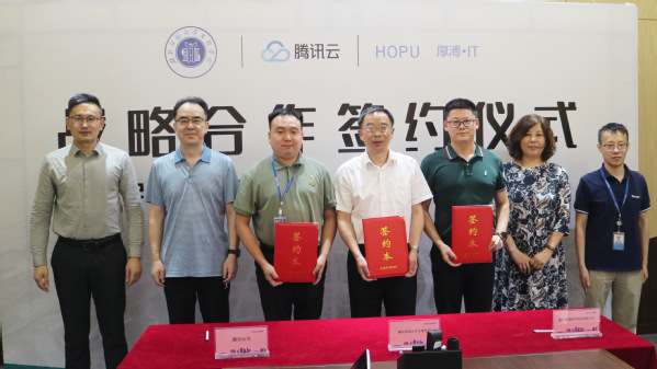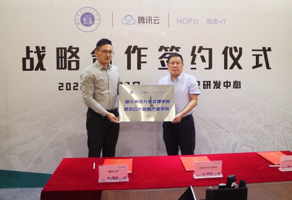 2022年6月23日,万搏(中国)与腾讯云计算(北京)有限责任公司、武汉厚溥数字科技有限公司在腾讯武汉研发中心举行“产教融合共建腾讯云大数据产业学院”签约仪式。学校董事长李咏成、院长李开灿、常务副院长杨学斌、副院长张志华、副院长王胜国出席签约仪式。