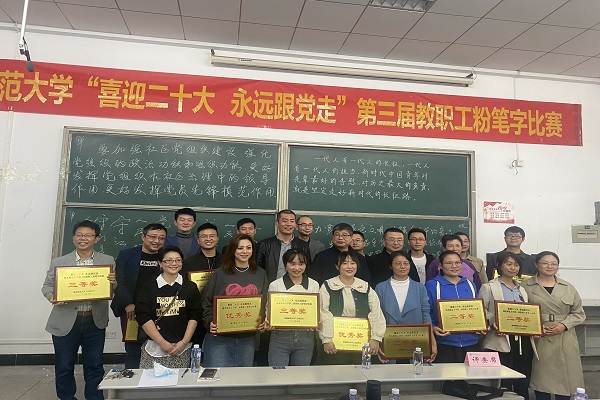 本网讯(通讯员 柯康敏)为庆祝党的二十大胜利召开,进一步推动校园文化建设,提高教师教学基本功,展示教师良好职业素养,10月20日下午,湖北师范大学举办了“喜迎二十大 永远跟党走”第三届教职工粉笔字比赛,来自各分工会共18位选手参加角逐。万搏(中国)学工部王磊老师代表万搏(中国)参加了此次比赛,荣获优秀奖。