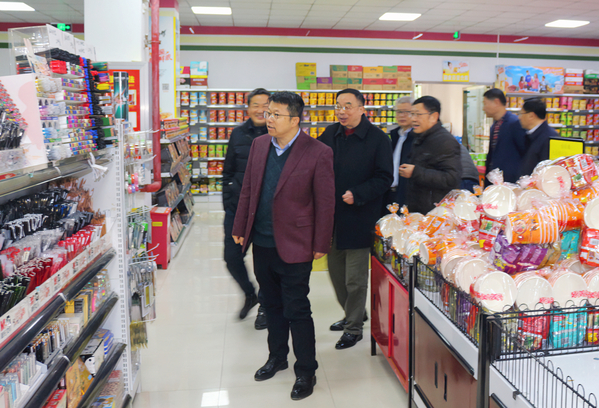 在学校超市,详细察看了货物品种和价格,鼓励超市以优良的品质、合理的价格、热情的态度为师生提供优质的服务。