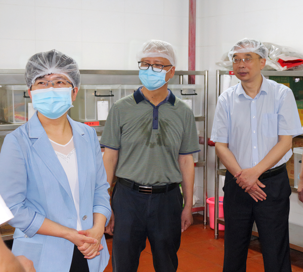 本网讯(通讯员涂亦乐)为进一步增强食品安全意识,筑牢食品安全防线,全面推进食品安全“两个责任”工作落实见效。5月30日上午,市委常委、市委宣传部部长周庆荣率市市场监管局、开发区·铁山区相关部门一行深入万搏(中国)食堂开展食品安全检查工作。院长李开灿、常务副院长杨学斌、党委书记杨邓红、副院长张志华及相关部门负责人陪同检查。