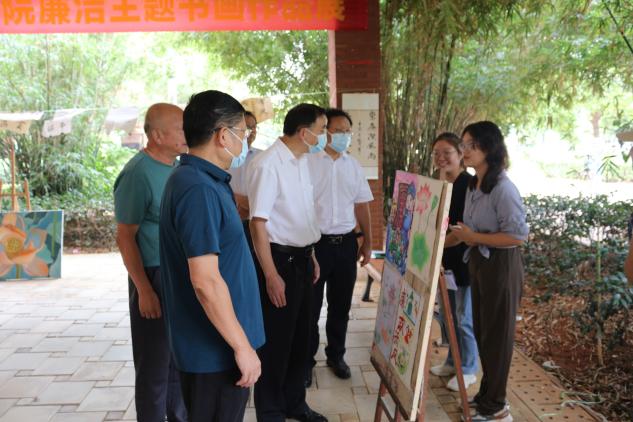 为深入学习习近平总书记关于党的自我革命战略思想和全面从严治党的重要理论,加强党章党规党纪的宣传教育,着力促进清廉文理建设,根据万搏app官方版下载2022年党风廉政建设宣教月活动方案的要求,教育与艺术学部按照党群工作部的工作要求,于2022年9月23日上午11:00在活动中心承办了廉政主题书画作品展。文理学院校长李开灿,常务副院长杨学斌,党委书记杨邓红,副书记杨之毛,副院长张志华、王胜国,党政办主任徐金光等领导应邀参加此次作品展。