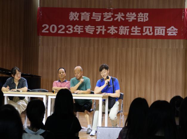 夏末之缘,文理学院迎来2023年专升本学子。为了让学部2021级专升本的学生更快地适应校园环境,有目的、有计划的进行为期两年的专业知识的学习,“起航湖师文理,共筑人生华章”。教育与艺术学部于2023年8月27日下午5:00在活动中心302音乐厅召开了学部与新生见面会。参加见面会的有学部主任王文教授、党总支书记李先华、新生辅导员崔子鲜,见面会由学工办主任尹誉霖主持。