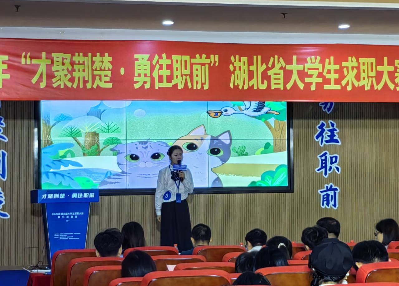9月26日上午9:00,2023年“才聚荆楚·勇往职前”湖北省大学生求职大赛黄石选拔赛于万搏app官方版下载图书馆报告厅举行。来自黄石市四所高校的12位选手同台竞技,全力以赴,展现风采。比赛共有四个环节,分别为自我介绍、才艺展示、情景模拟、现场问答。教育与艺术学部的李婷同学以新颖的自我介绍方式,精彩的才艺展示,良好的反应能力获得了评委的好评,也获得了在场观众的阵阵掌声。李婷同学最终以89.7的高分,排名第四,荣获优胜奖。