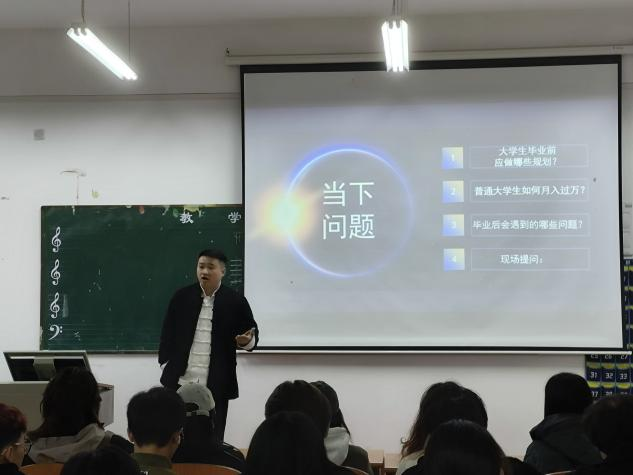 活动中,学长李华根准备的课件从对大学生毕业前应做哪些规划、普通大学生如何实现人生价值、到毕业后会遇到哪些困惑等问题进行了详细解答,通过自身经历,帮助同学们答疑解惑。在互动问答环节,同学们也积极参与,根据李华根的演讲认真思考如何从当下做起,改变未来。