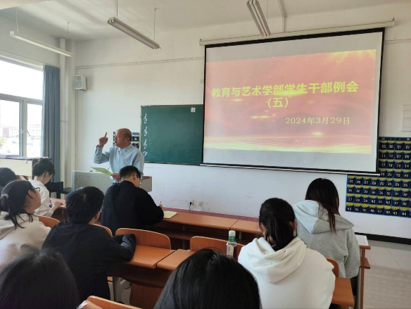 2024年3月29日中午12:00,在实验楼1-403多媒体教室组织召开学生干部工作例会。全体辅导员、团学会干部及各专业班级负责人与会。例会由总支书记李先华主持。