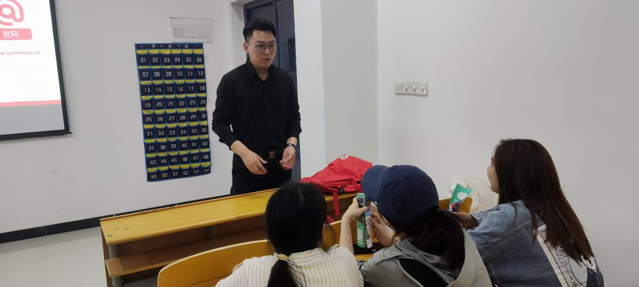 启智伟业教育科技集团的赵经理从启智集团的概况、招聘的岗位、晋升的机制和员工的福利待遇等方面一一做了详细的解说,解答了同学们的疑惑,并在宣讲会后与有意向的学生进行了一对一面谈。