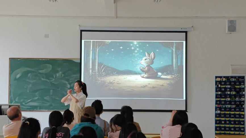 学前教育2302班的宋灵琳和学前教育2301班的陈明燕先后讲述了儿童故事《哭是解决不了问题的哦》和《迟到的理由》,内容丰富,通俗易懂,语言生动形象,带动了课堂的氛围。最后,总支书记和学部主任针对展示内容、语音语调和课堂呈现等方面为同学们给出了指导性意见和建议。