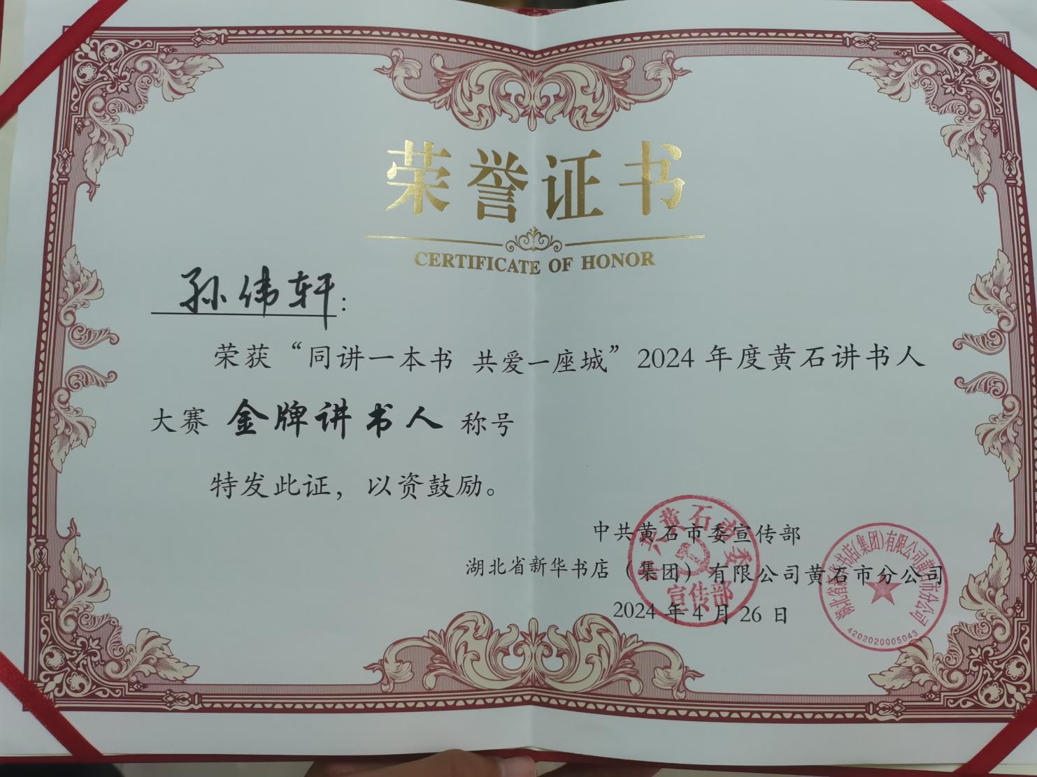来自黄石市教育局(中小学)、湖北师范大学、湖北理工学院、万搏app官方版下载、湖北工程职业学院等23名选手参加了激励角逐,我部小学教育2105班的孙伟轩同学用自己独特的视角和方式,讲述了黄石的历史变迁、风土人情,黄石人的顽强向上钢铁精神,表达了对黄石以及长篇小说《钢的城》的炙热情感。他的精彩表现获得了9.72分的高分,位居第一,荣获“金牌讲书人”称号。