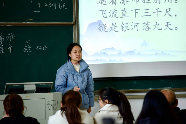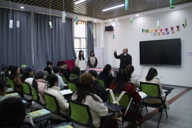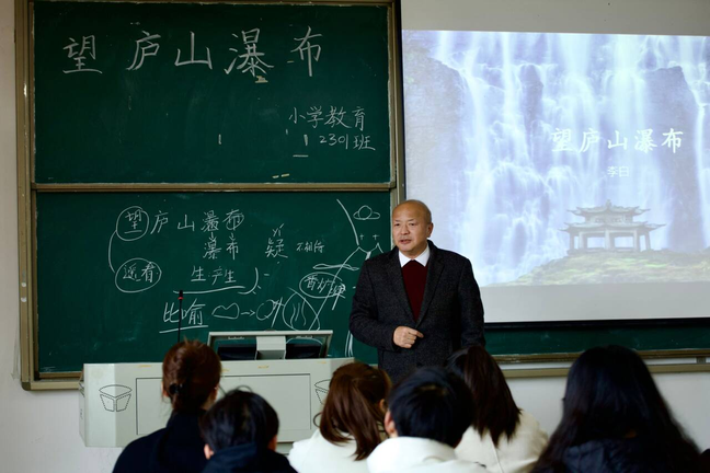 首先由小学教育2301班曾维方同学带来的小学教育课前十分钟《望庐山瀑布》模拟授课,她授课语言朴素大方,讲解通俗易懂,恰当的运用了互动,使课堂气氛活跃,充分展现了小学教育专业扎实的学习成果与学生自身良好的教学素质。其次由学前教育专业李浩然同学演绎的《小猪盖房》手指游戏活动,精准嵌入学前教育专业特质,不仅展现个人专业素养,也充分彰显学前教育专业独有的风采与精神。最后总支书记对于23级学前教育、小学教育专业的课前十分钟开展情况给予高度肯定,并对于任课教师的悉心教诲、各专业班级的精心组织、参与者的综合表现提出表扬。师范生平时只有注重专业能力的训练、多参加专业类实践才能为日后走上讲台打下坚实的基础,临近岁末,对考风考纪、校园安全等多方面对同学们提出了更高的要求。