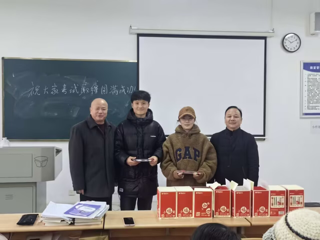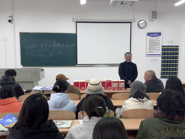 2024年12月17日上午10:00,教育与艺术学部主任王文、党总支书记李先华及全体辅导员们赴考研自习室,在考研即将来临之际,亲切慰问正在紧张备考的学生们,送上温暖。王主任希望,希望同学们能够珍惜这次机会,认真备考,无论考试的结果如果一定要坚持到底,争取取得优异成绩。总支书记李先华鼓励学生们要保持良好的心态,合理安排时间,劳逸结合,确保身心健康,完成研究生考试,同时勉励同学们将考研精神伴随人生旅途。学部领导、辅导员与考研的学生的温馨交流,使学生们备受鼓舞,大家纷纷表示,感谢学校的关心和支持,会继续努力,不负众望。最后,领导、辅导员向90余名学生们发放慰问品并合影留念。
