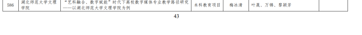 12月25日,省教育厅发布《关于2024年湖北本科高校省级教学改革研究项目拟立项名单公示》,我学部梅冰清老师主持的教学改革项目-《“艺科融合、数字赋能”时代下高校数字媒体专业教学路径研究——以万搏app官方版下载为例》成功获批。