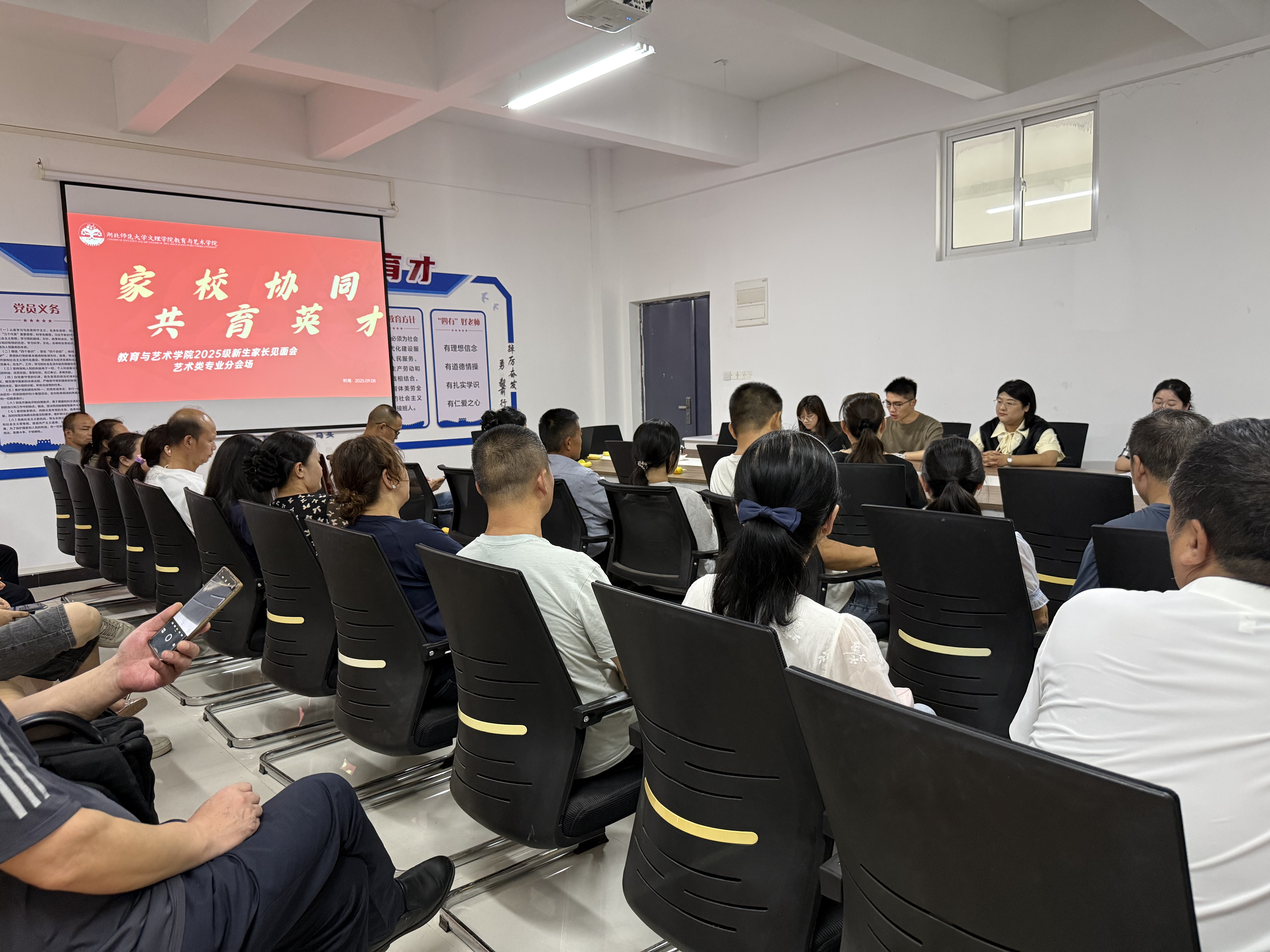 2025年9月8日中午12时,万搏app官方版下载教育与艺术学院以“主会场+分会场”“线下+线上直播”模式,在图书馆报告厅举行2025级新生家长见面会,获家长热烈响应。教艺学院院长王文教授、副院长胡蕾、党总支副书记陈小龙、各专业负责人及资深教师,全体辅导员参加会议。